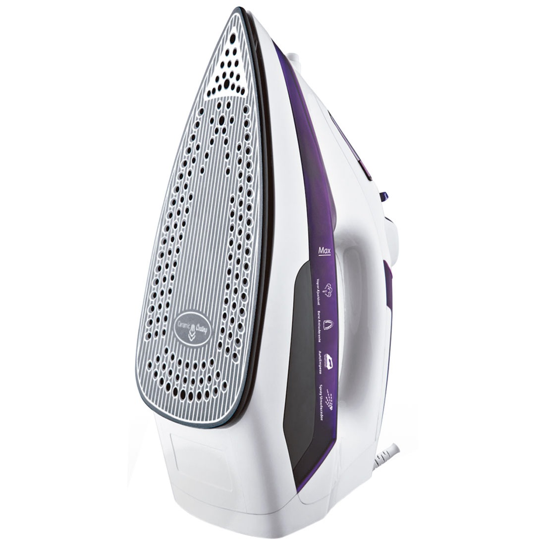 La Plancha Ceramic Express, tiene un depósito de agua con tapa, una base de cerámica que se desliza fácilmente sobre todas las telas, un spray humectante para facilitar la eliminación de arrugas, protectores de botones en toda la base, un LED brillante indica el funcionamiento de la plancha, sistema de autolimpieza, control de salida de vapor, vapor vertical que libera una gran cantidad de vapor que permite eliminar las abolladuras de la ropa que aún se encuentra en la percha, manija de goma para mayor ergonomía y seguridad, manija giratoria de 360º y accesorio complementario que facilita agregando agua a la plancha.