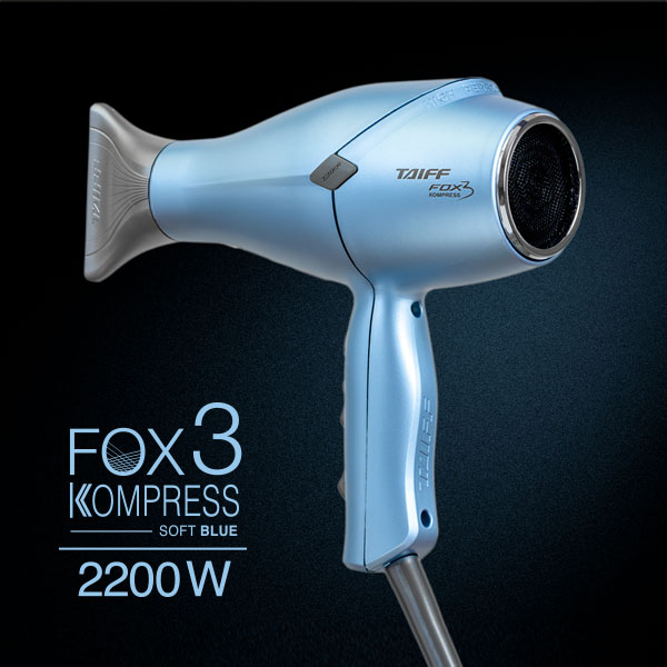 Ligero, elegante y ahora compacto. Taiff presenta la secadora Fox 3 Kompress. Mucha más comodidad durante su uso, con la misma potencia de 2200W y el color Soft Blue le da un estilo propio y mucha sofisticación. Los iones negativos sellan las cutículas del cabello, dejándolo suave y brillante, y el botón de chorro de aire frío fija el peinado y reduce el encrespamiento. Su tapa trasera magnética facilita la limpieza, brindando mayor durabilidad a la secadora.